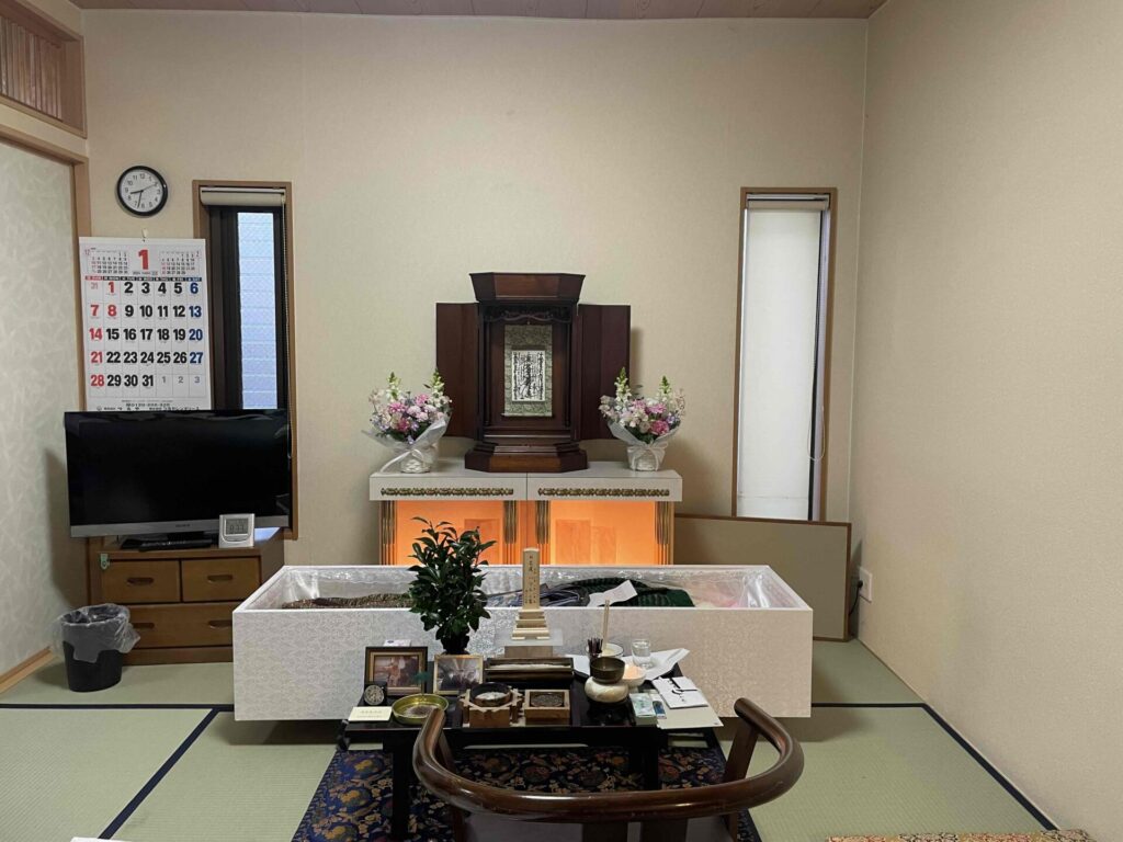 福津市に住む女性K様は、20年以上お母様とお二人暮らしをされていました。2年程前から、お母様の具合が悪くなり、入退院を繰り返していらしたそうです。病魔には勝てず2015年春に他界されました。近くの葬儀社での葬儀も考えられていたみたいですが、入院中お母様は「早く、お家に帰りたい・・」と繰り返していたことを考え、マンション5階の自宅で葬儀をすることに決められました。